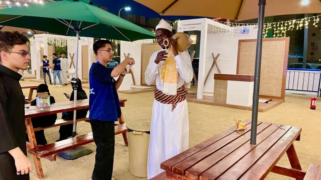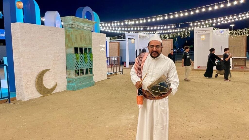 أبرز تلك التفاصيل، أظهرها قرع طبل المسحراتي والأهازيج المصاحبة له، في وقت يرى فيه سلطان نصّار “مسحراتي بسطة خير السعودية”، أن تجسيد المهن القديمة في الفعاليات الرمضانية من شأنه أن يساهم في الحفاظ على تاريخها من الاندثار.