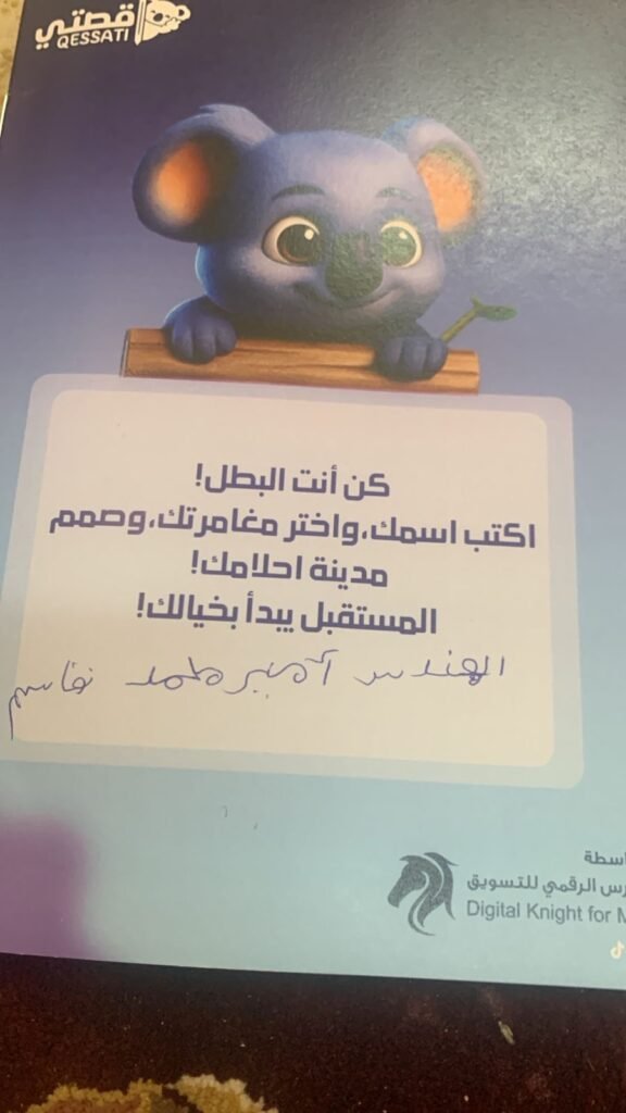 كما خاض تجربة الكتابة الإبداعية في فعالية اصنع قصتك بنفسك، حيث كتب قصة عبّر فيها عن حلمه أن يكون مهندسًا يسهم في بناء وطنه الغالي ويكمل مسيرته المشرّفة.
