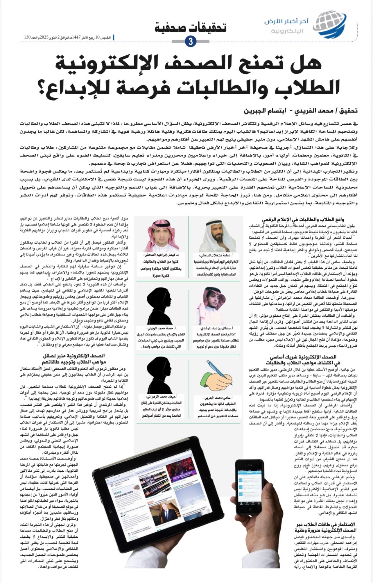 هل تمنح الصحف الإلكترونية الطلاب والطالبات فرصة للإبداع أضغط هنا