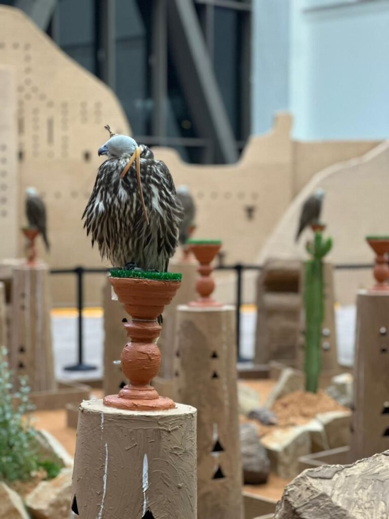كما استوقفت الأعمال الفنية التشكيلية أنظار الزوّار بلوحاتٍ ومنحوتات تجسد جمال الصقر ورمزية الملوك وروح الصحراء، مقدمة مشهدًا بصريا مدهشًا عكس تفاعل الفن مع التراث الوطني.