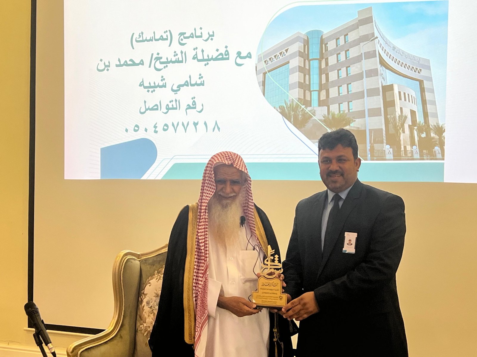 وتحدث فضيلة الشيخ محمد بن شامي شيبه خلال كلمته شارحاً الأبعاد الشرعية والاجتماعية لبرنامج “تماسك”، مؤكدًا أن الاستقرار الوطني هو أساس أمن الوطن، وأن اللحمة بين الشعب والقيادة الرشيدة تعكس قوة الدولة واستمرار رفعتها، وأوضح فضيلته أن التمسك بالقيم الوطنية والولاء للقيادة يمثل واجبًا شرعيًا وأخلاقيًا لكل فرد في المجتمع، مشددًا على أن وحدة المجتمع وترابط أفراده تُسهم في تعزيز الأمن الفكري والاجتماعي.