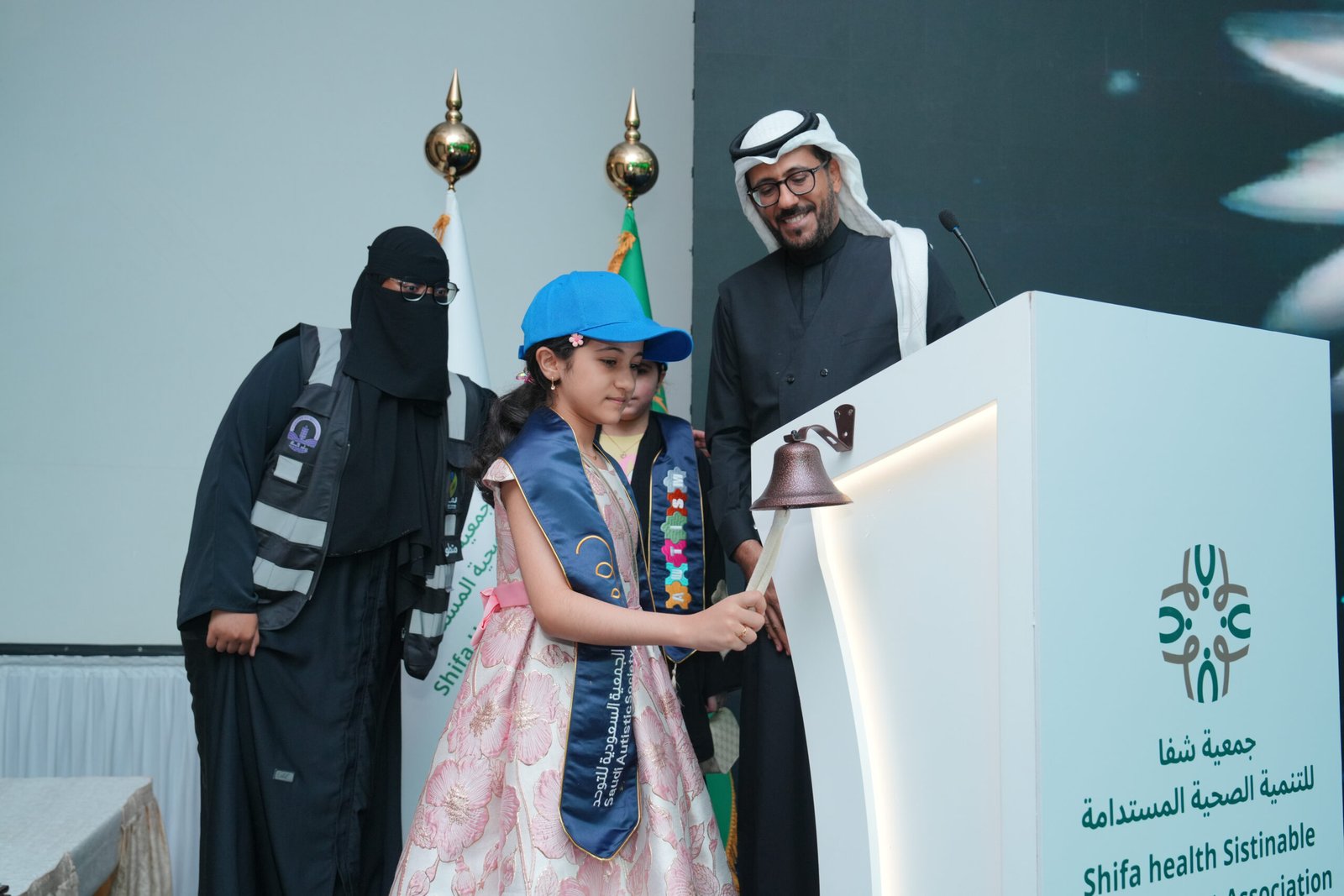 بعد ذلك، عُزف السلام الملكي بمصاحبة عدد من أطفال التوحد والسرطان والغسيل الكلوي، الذين عبّروا ببراءتهم وحضورهم اللافت عن حبهم للوطن، قبل أن يلقي رئيس مجلس إدارة جمعية شفا للتنمية الصحية المستدامة الأستاذ محمد بن عبدالرحمن الراجحي كلمة استعرض فيها توجهات الجمعية خلال المرحلة المقبلة، مشيداً بجهود المجلس السابق والإدارات السابقة، ومثمناً أدوار الشركاء والداعمين، كما أوضح ملامح خارطة الطريق المستقبلية للجمعية.