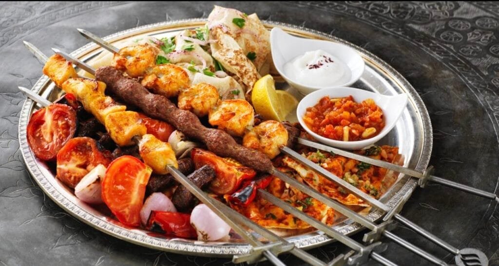 اليوم الثالث: شوربة خضار + مشاوي مشكلة + حمص بالطحينة + عصير مانجو +حلى قطايف.