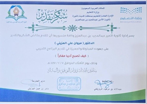 كيف تصبح أديبا مثقفا مفكرا: د. مروان المزيني في المدارس الثانوية