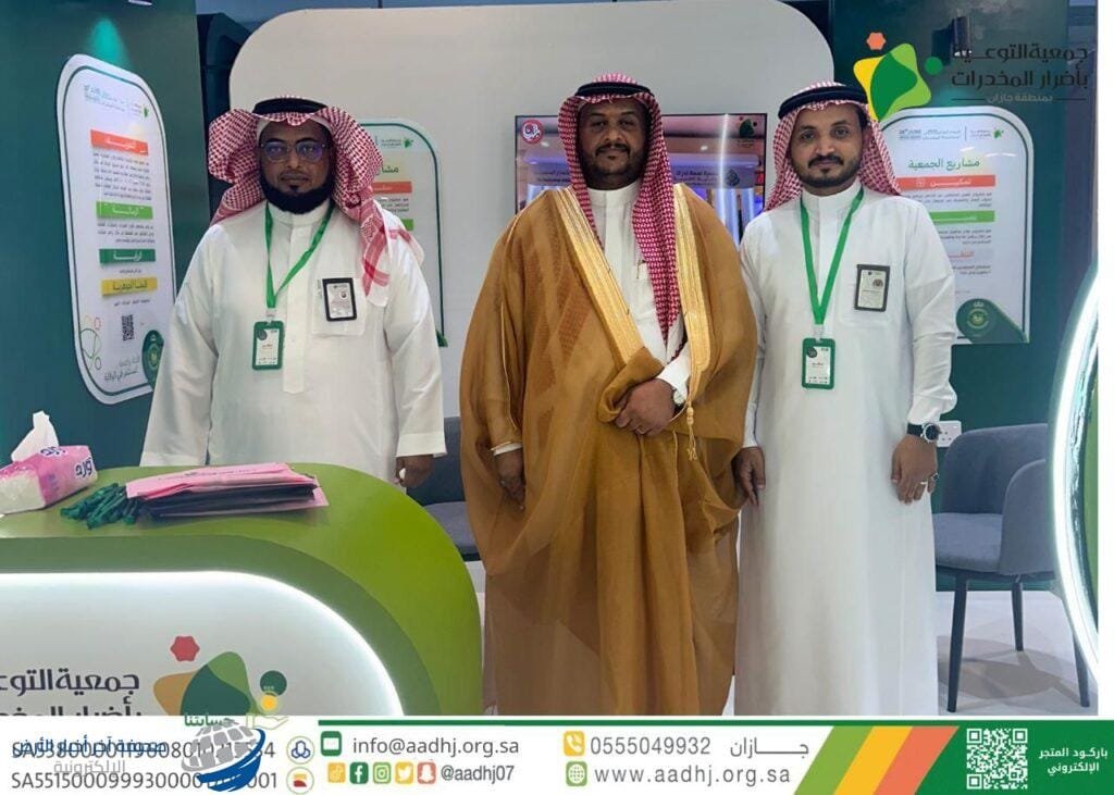 وأكد رئيس الجمعية د. سطام جده أن مشاركة الجمعية تأتي من خلال المعرض لإبراز  دورها في رفع مستوى الوعي و التوعية بمخاطر المخدرات، وذلك في إطار تثقيف زوار المعرض من مختلف فئات المجتمع ، والتعريف بطرق وأساليب الوقاية من تعاطي المخدرات وأضرارها على الفرد والأسرة والمجتمع، وكذلك تستعرض لـ لزوار المعرض مشاريع الجمعية التي تشمل تدريب المتطوعين والمتعاونين بالإضافة إلى مشروع لـلتأهيل وعلاج المدمنين والمدمنات من المخدرات ، ومشروع مملكتي لتقديم الندوات التوعوية والمعارض المتنقلة ، إلى جانب ذلك مشروع تمكين لتدريب المتعافين وتأهيلهم لسوق العمل وتأهيل اسر المتعافين ومرسم للأطفال لتعزيز القيم والهوية الوطنية، مشيدًا في هذا الإطار على أهمية وضرورة تفعيل دور الشراكة بين الجهات الحكومية والأهلية في تعزيز حصانة المجتمع تجاه المخدرات، وذلك من خلال التوعية بأضرار المخدرات والمؤثرات العقلية على المجتمع السعودي، وعبر رئيس الجمعية د. سطام جده عن خالص شكره وتقديره لصاحب السمو الملكي الأمير محمد بن ناصر بن عبد العزيز أمير منطقة جازان لما تجده الجمعية من متابعة واهتمام دائم من سموه لمختلف الأعمال ومهام الجمعية ودعمه لبرامجها التوعية ، سائلا الله للجميع العون والسداد.